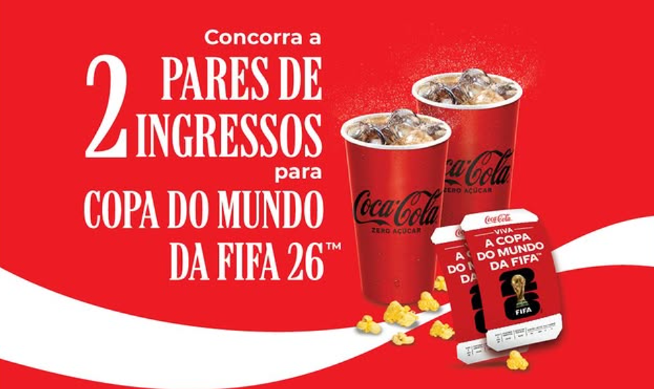 A Cinépolis anunciou uma nova campanha em parceria com a Coca-Cola que vai sortear ingressos para a Copa do Mundo FIFA 2026. A promoção acontece entre 1º e 30 de abril de 2026 e inclui, além das entradas para os jogos, pacote completo com viagem e hospedagem para os vencedores.